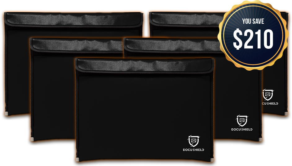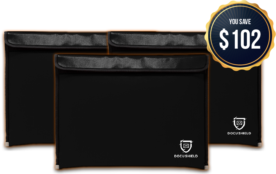 DocuShield® is engineered by combining 3 incredibly strong synthetic layers to maximize fire resistance. It's composed of a military-grade aluminum insulation, synthetic fiber barrier, and silica fiberglass material to absorb intense heat and divert it away from your priceless possessions.